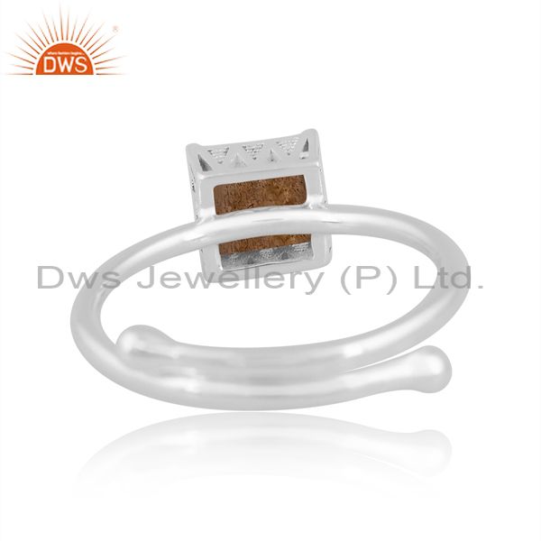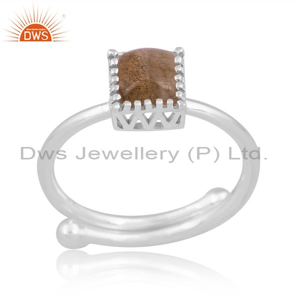 Labradorite Cabochon Square With White Sterling Silver Ring