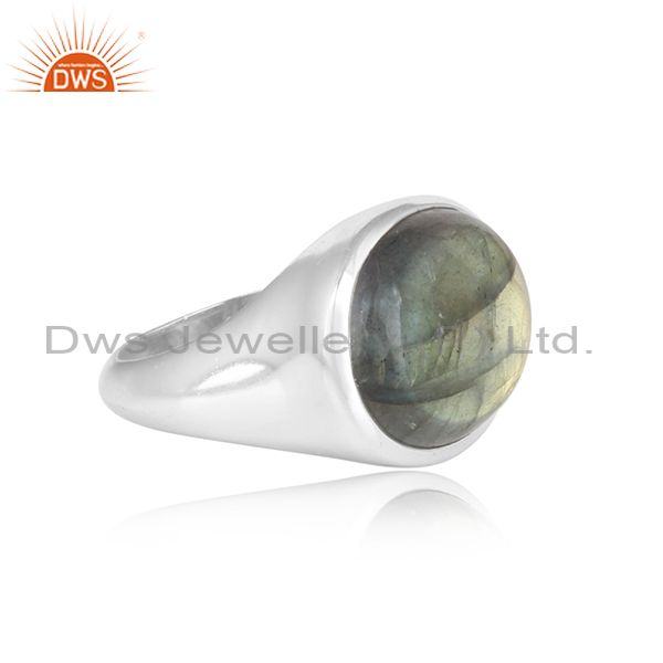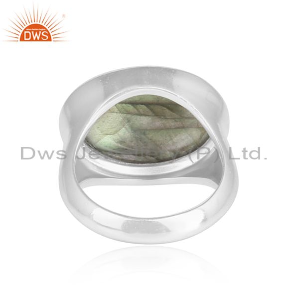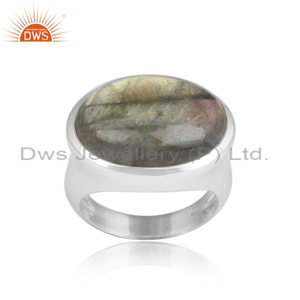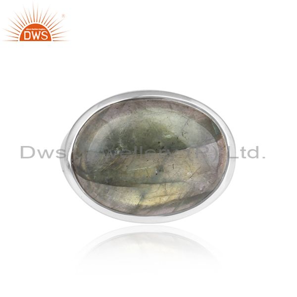 Labradorite Cabushion Mounted Sterling Silver White Ring