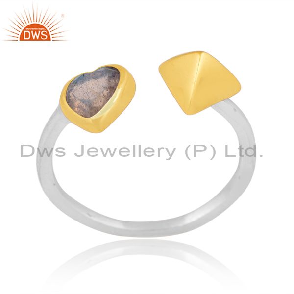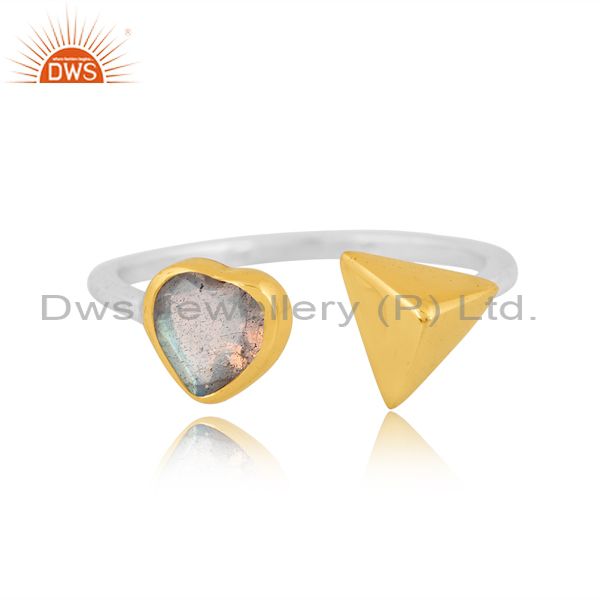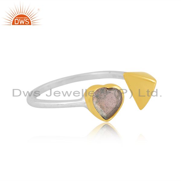 Labradorite Cut Heart Gold & White Sterling Siler Ring