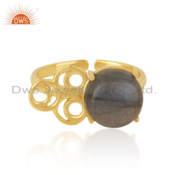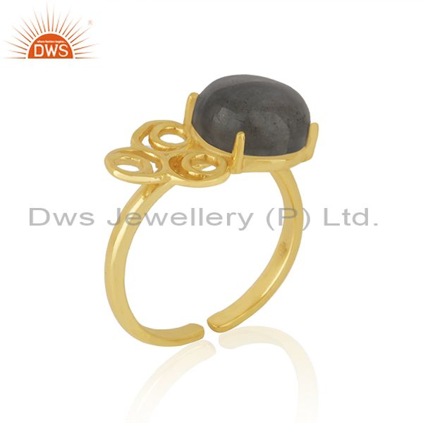 Labradorite Gemstone Girls Gold Plated Silver Ring Jewelry Supplier