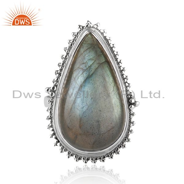 Labradorite Gemstone Oxidized 925 Silver Designer Ring Manufacturer Of Jewelry