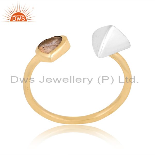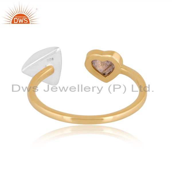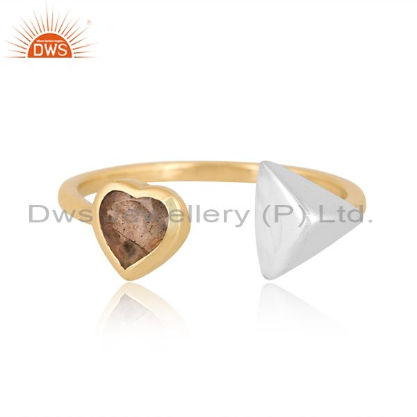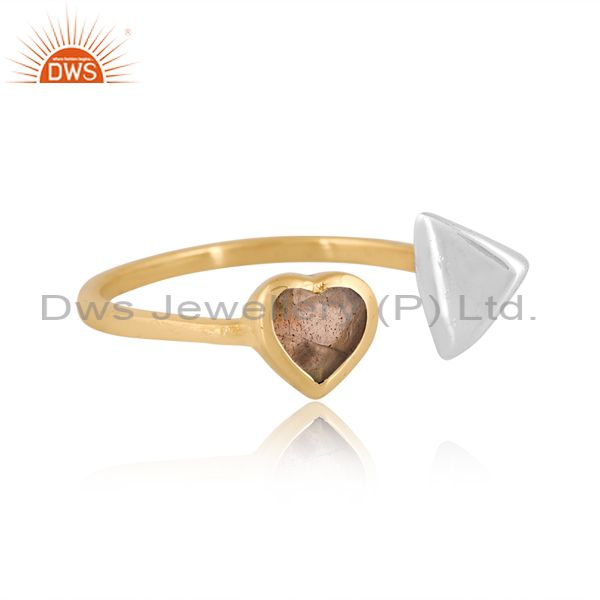 Labradorite Heart Cut White & Gold Dazzling Brass Ring