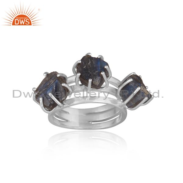 Labradorite Set Fine 925 Silver Multi Band Designer Ring
