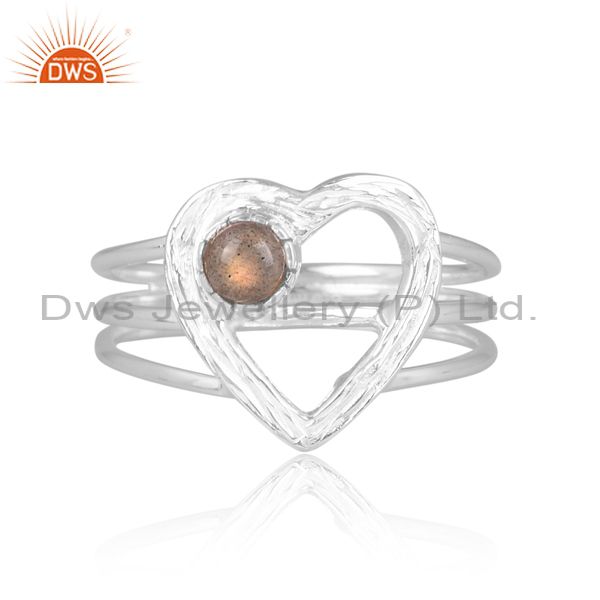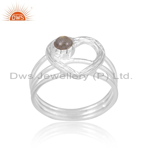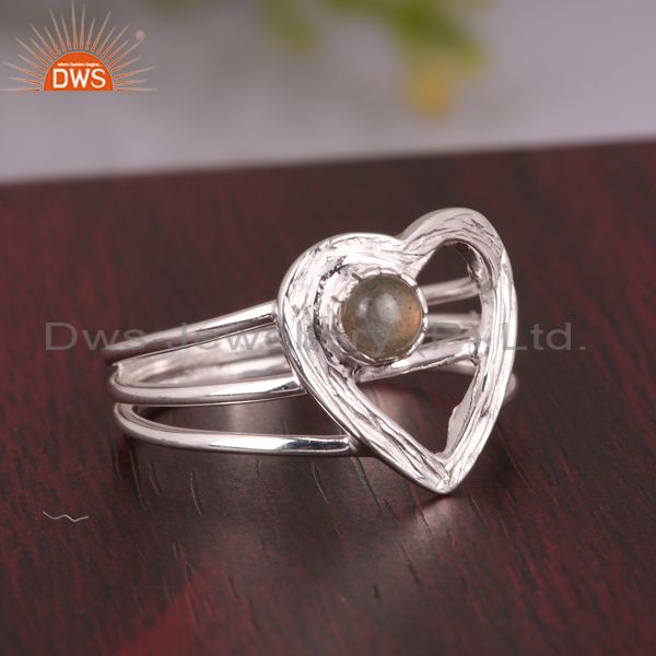 Labradorite Set Fine 925 Sterling Silver Heart Shaped Ring