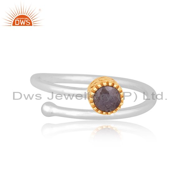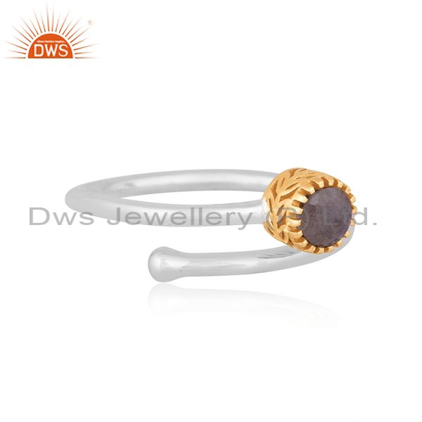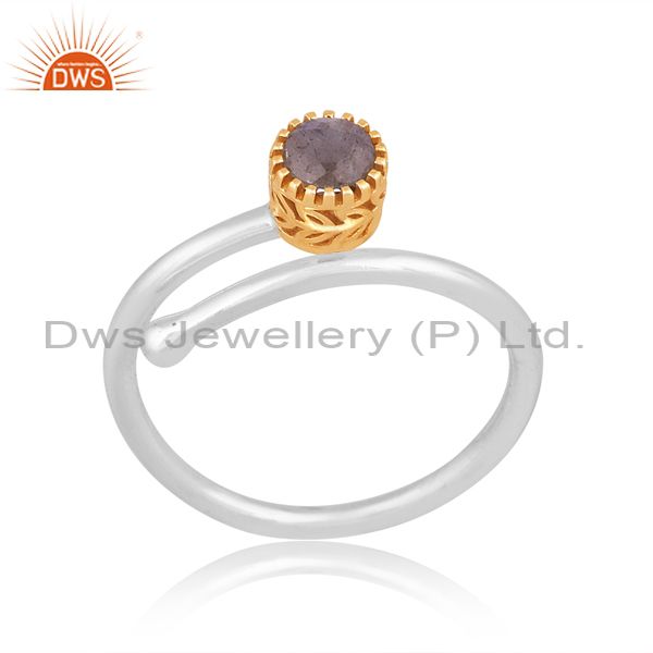 Labradorite Set Gold On Fine Silver Crown Style Twist Ring