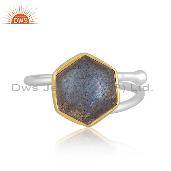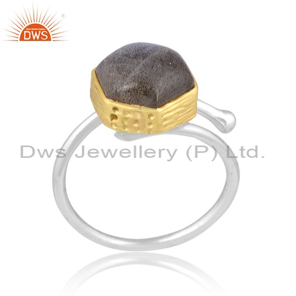 Labradorite Set Gold On Fine Sterling Silver Handmade Ring