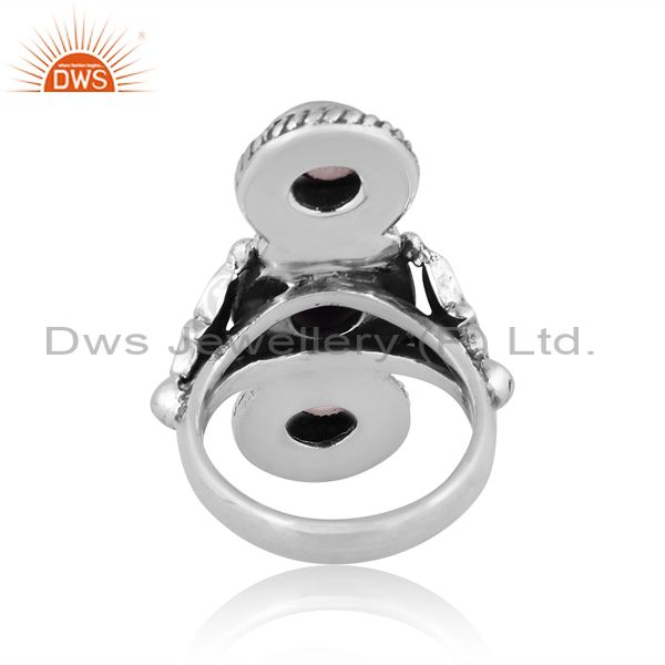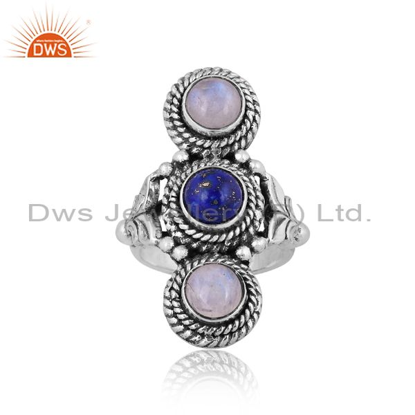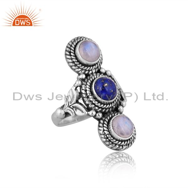 Lapis And Rainbow Moon Stone Set Oxidized Silver Classy Ring
