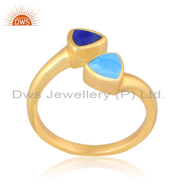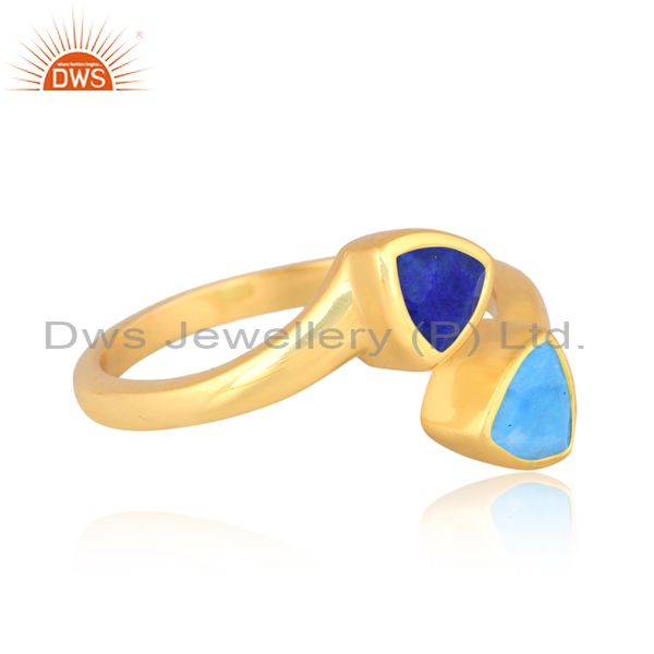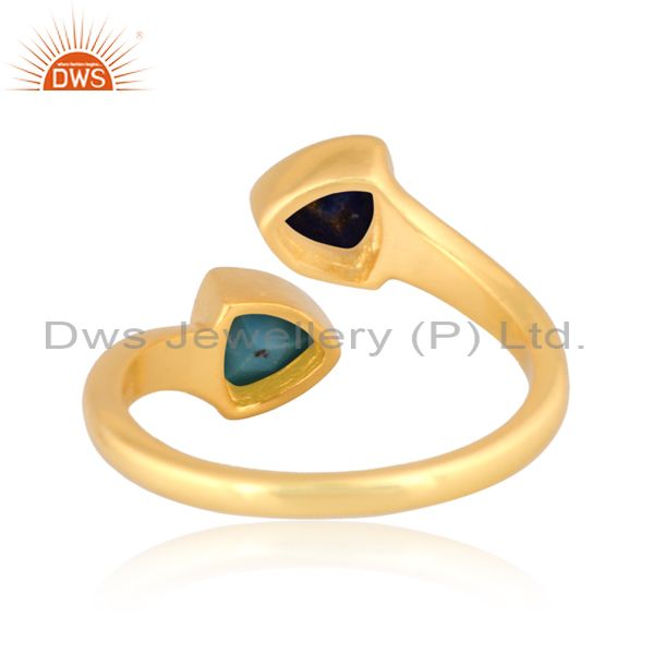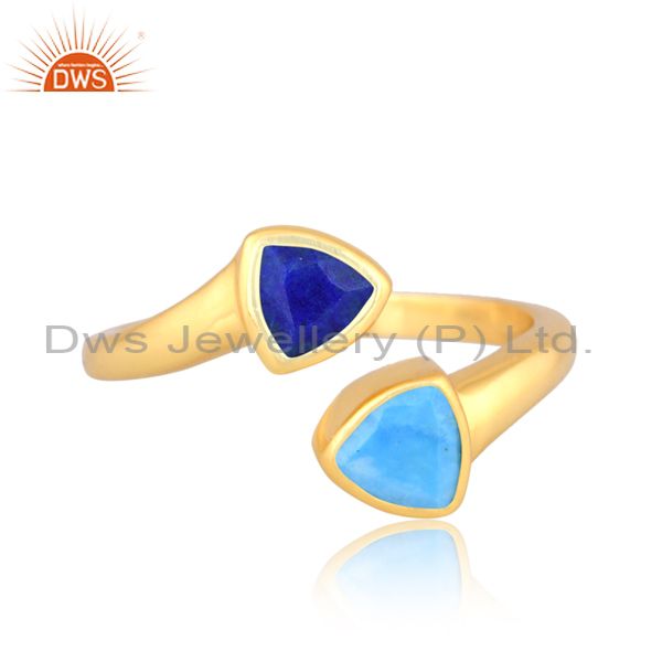 Lapis And Turquoise Set Gold On Sterling Silver Open Ring