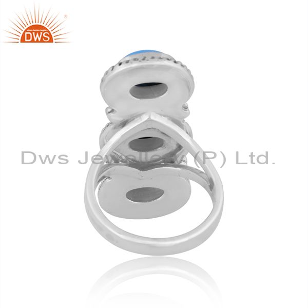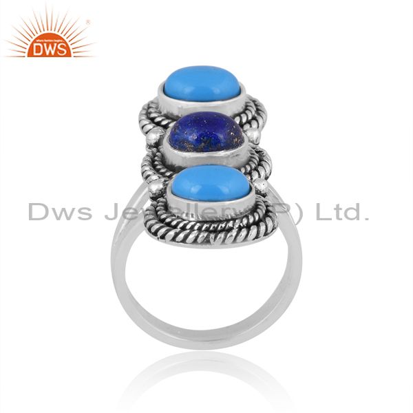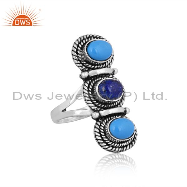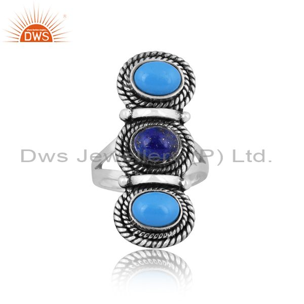 Lapis And Turquoise Set Oxidized Silver Ethnic Designer Ring