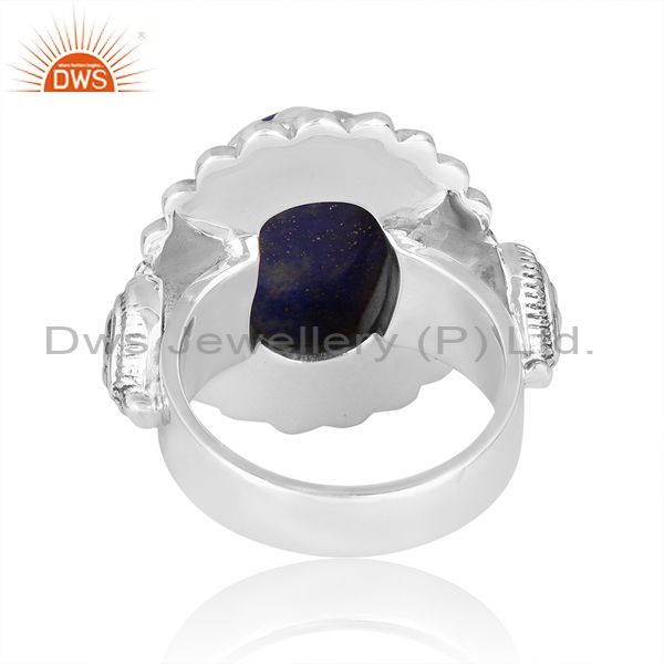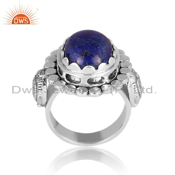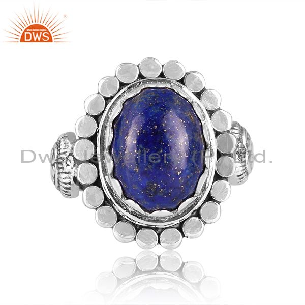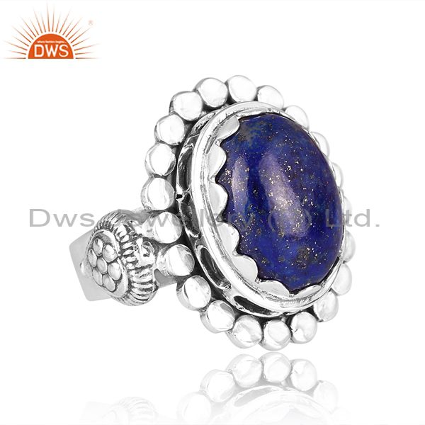 Lapis Cabochon On Oxidized Sterling Silver Ring Round Tikdi