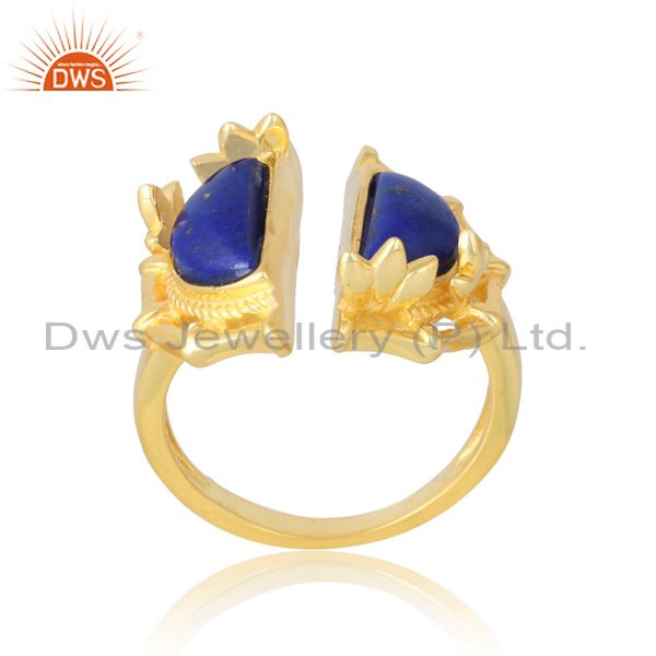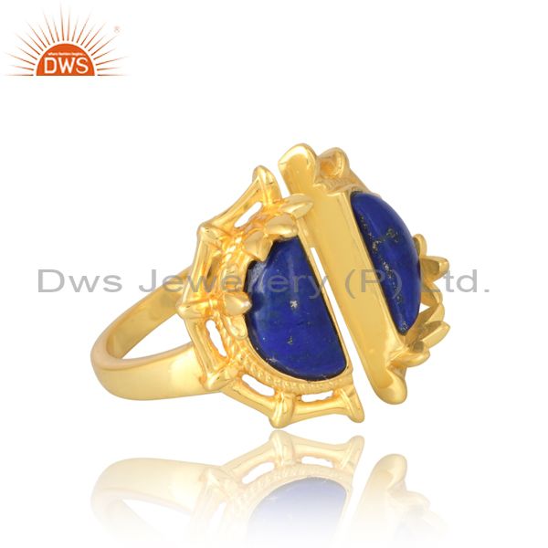 Lapis Cabushion Brass Gold Ring Women Proposal Decent Price