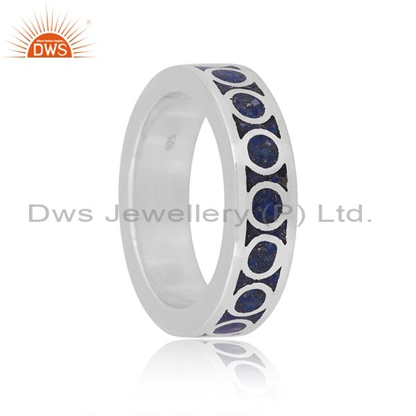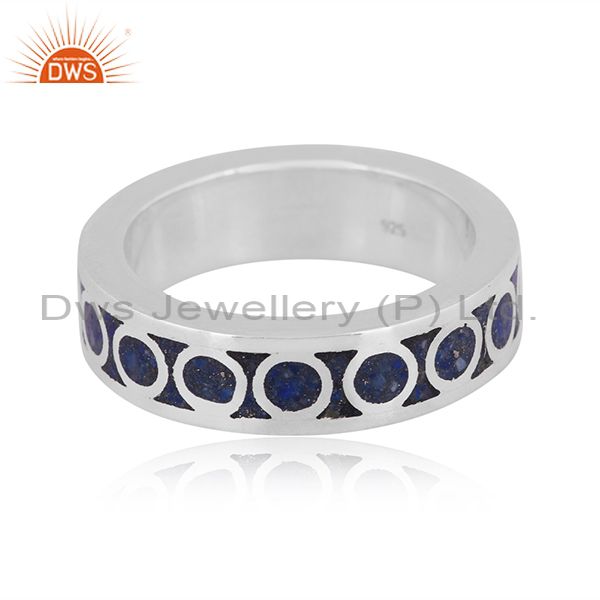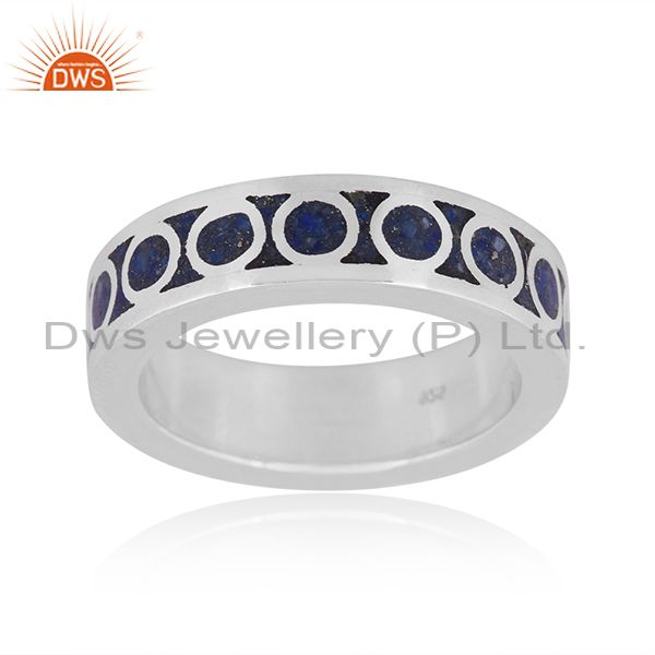 Lapis Coin Set Fine 925 Sterling Silver Design Embossed Ring