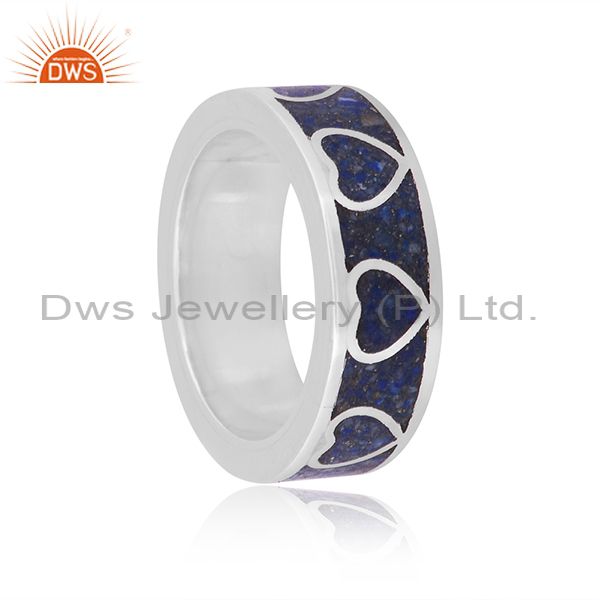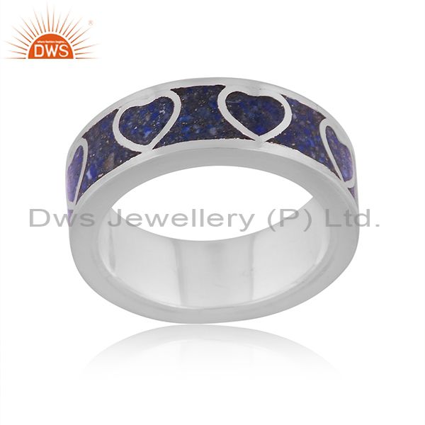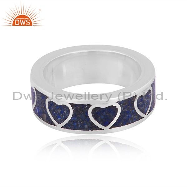 Lapis Coin Set Fine 925 Sterling Silver Hearts Embossed Ring