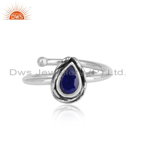 Lapis Cut Pear Shaped Design Sterling Silver Oxidized Ring