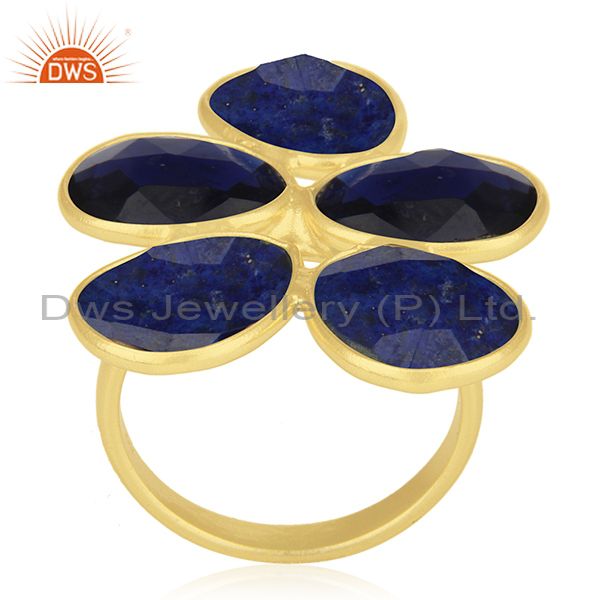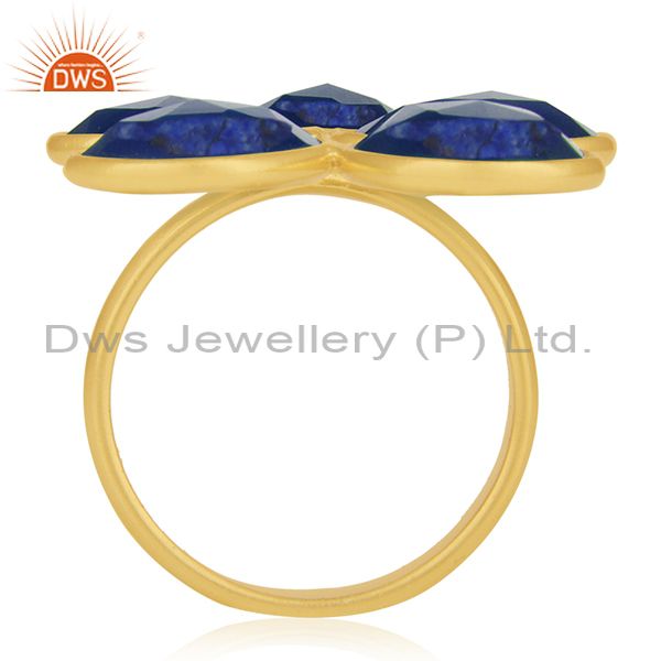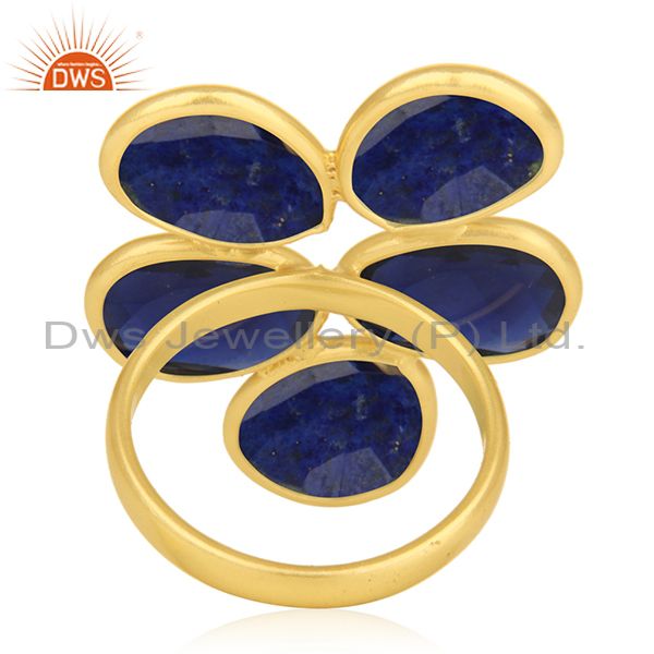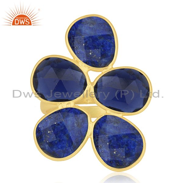 Lapis Lazuli and Blue Corundum Gemstone Sterling Silver Gold Plated Ring