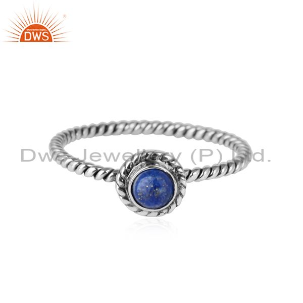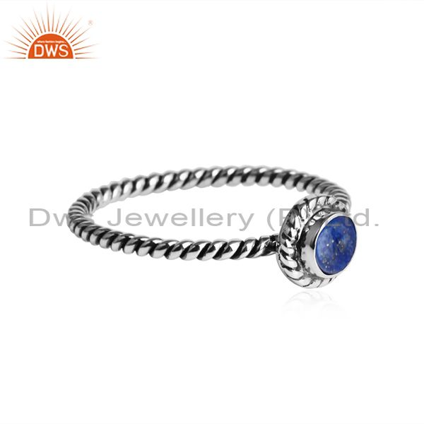 Lapis Lazuli Gemstone Twisted Design Oxidized 925 Silver Rings