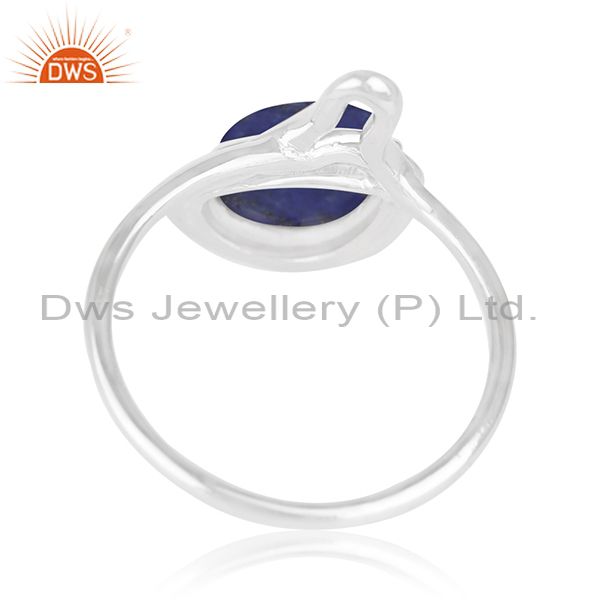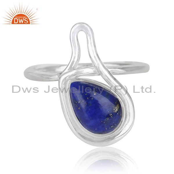 Lapis Lazuli Gemstone White Rhodium Plated 925 Silver Ring Jewelry