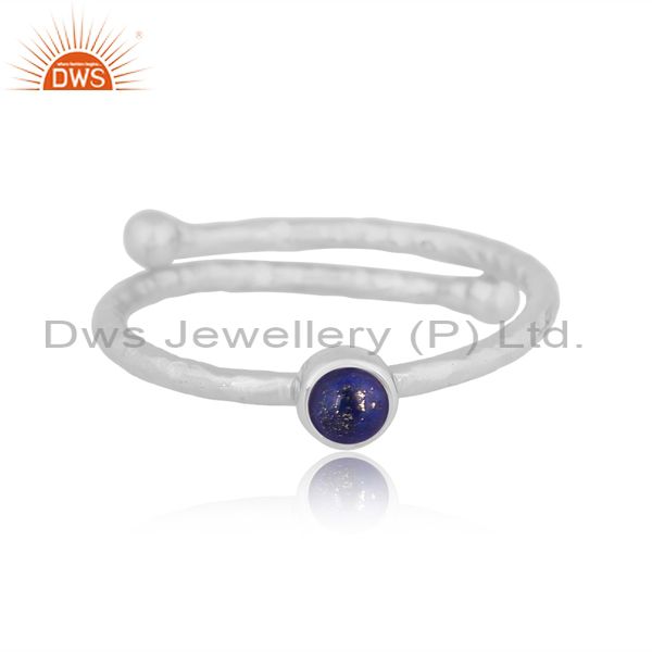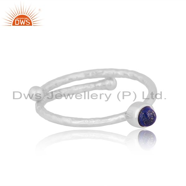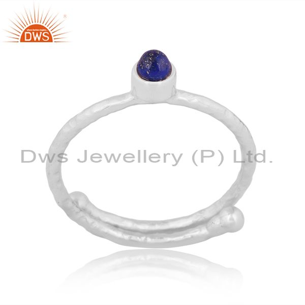 Lapis Set Fine 925 Sterling Silver Handhammered Classic Ring