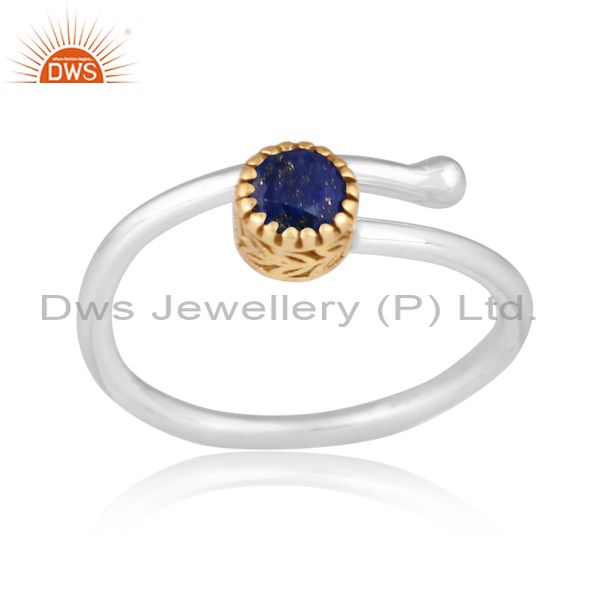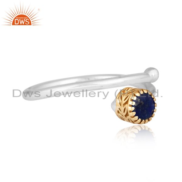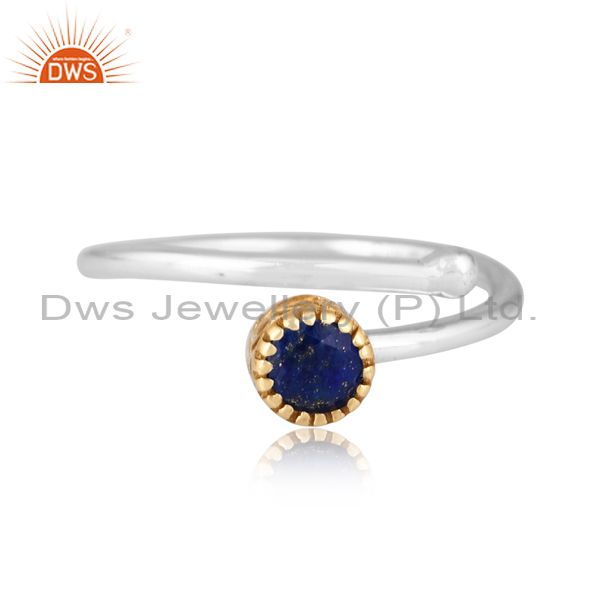 Lapis Set Gold On Fine 925 Sterling Silver Crown Twist Ring