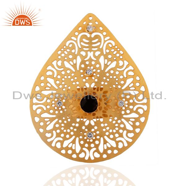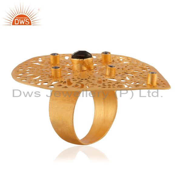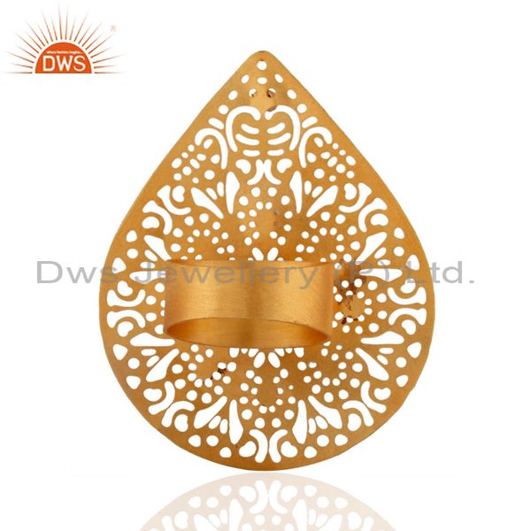 Large Fashion Design Retro Long Finger Small Hollow Filigree 18K Gold Gp Knuckle