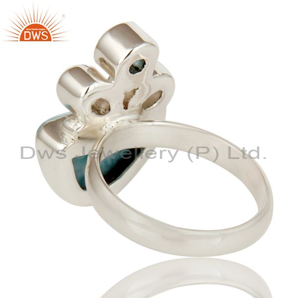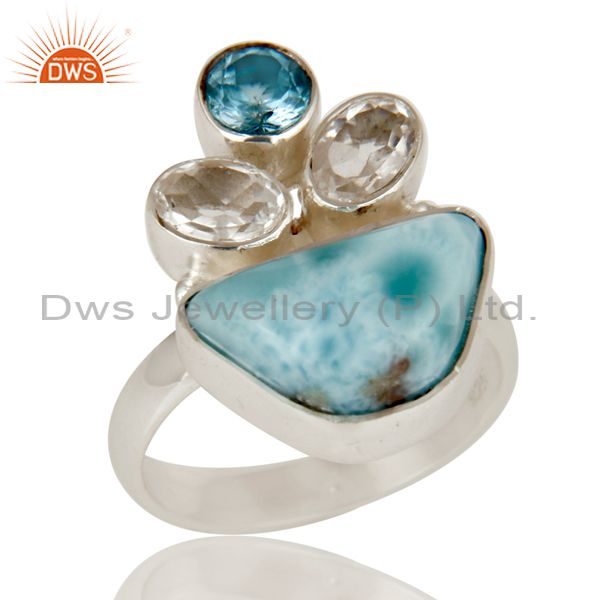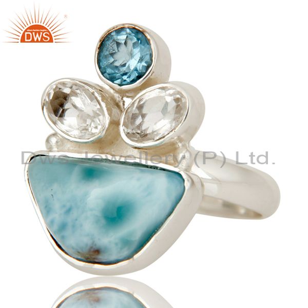 Larimar, Blue Topaz and Crystal Solid Sterling Silver Artisan Ring