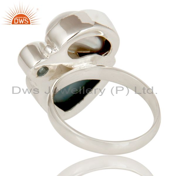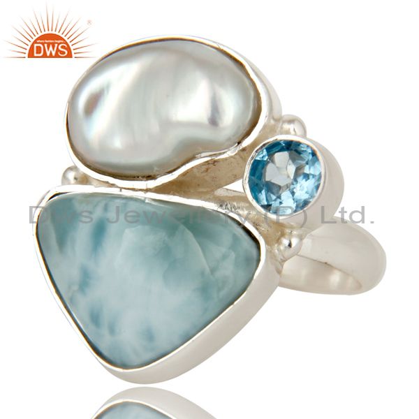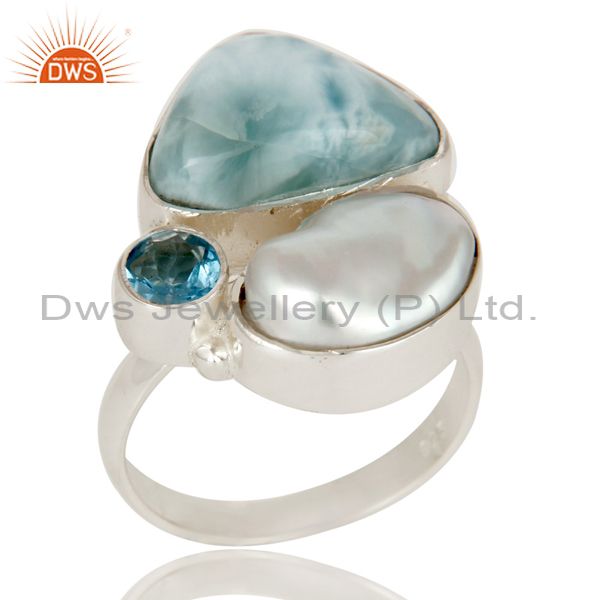 Larimar, Fresh Water Pearl and BT Solid 925 Silver Gemstone Ring