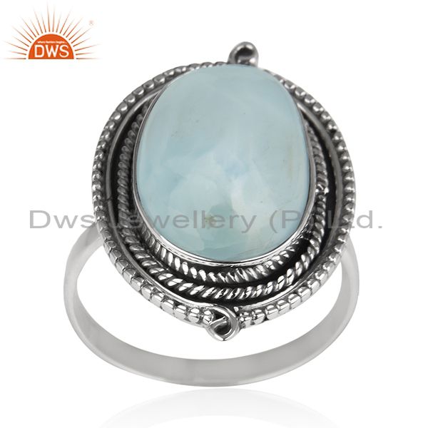 Larimar Gemstone Oxidized 925 Sterling Silver Cocktail Ring Manufacturer India