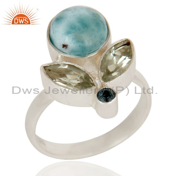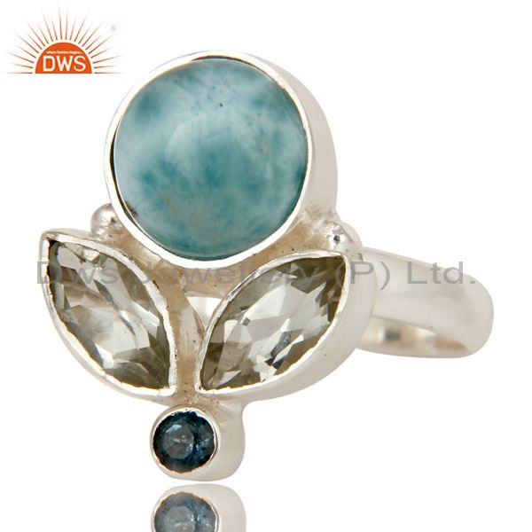 Larimar, Green Amethyst And Blue Topaz Sterling Silver Gemstone Ring