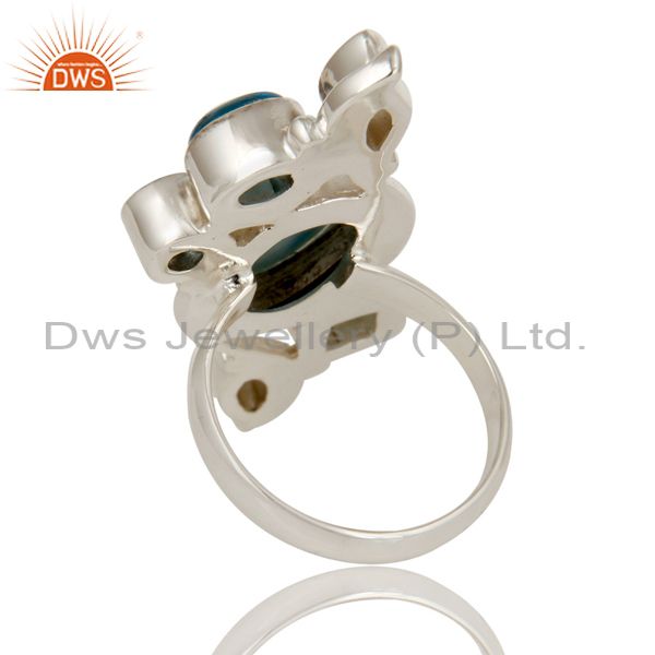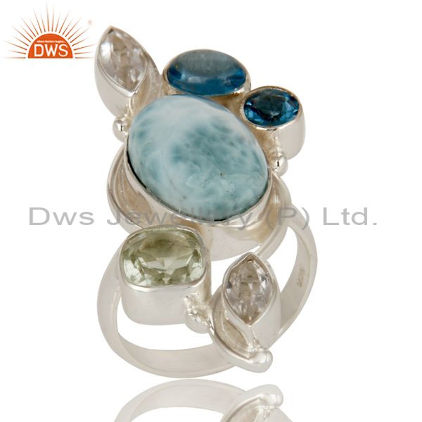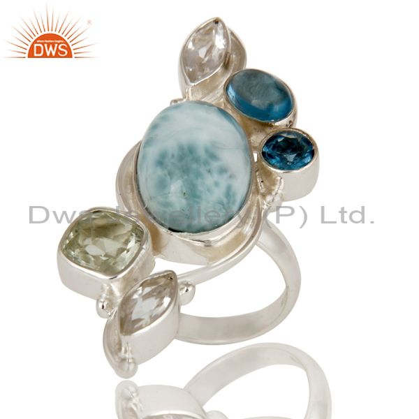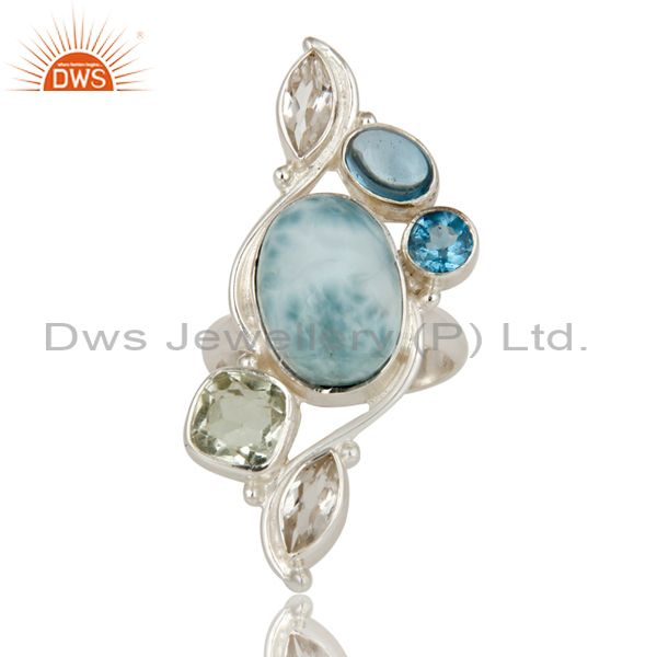 Larimar, Green Amethyst, Blue Topaz and Crystal Sterling Silver Handmade Ring