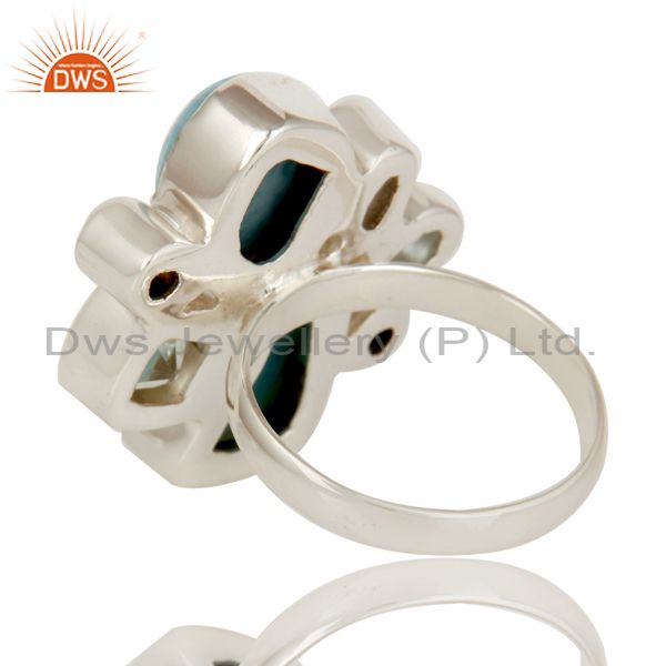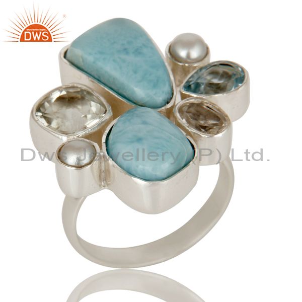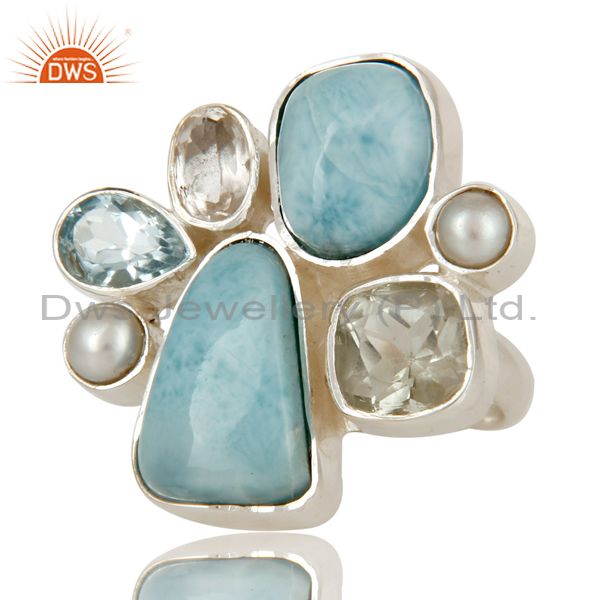 Larimar, Pearl, BT and Crystal Quartz Sterling Silver Handmade Designer Ring