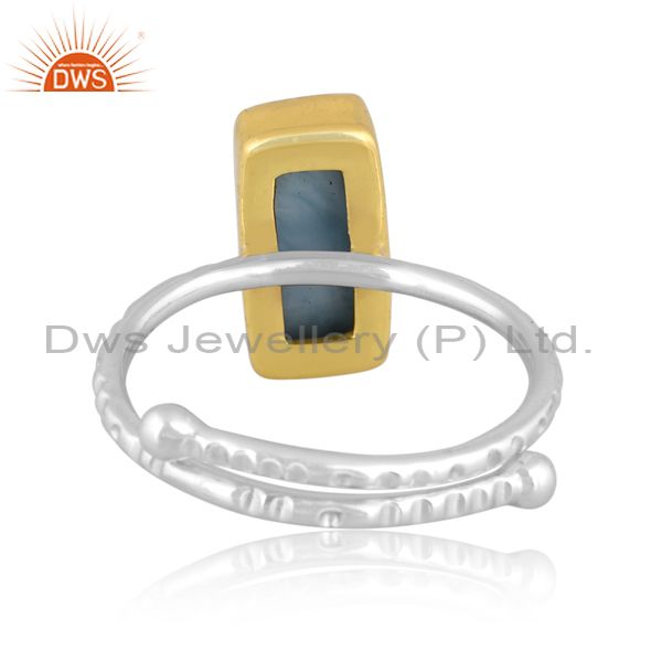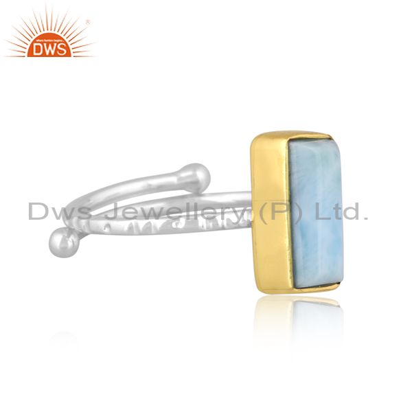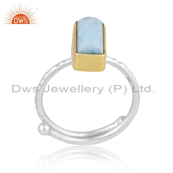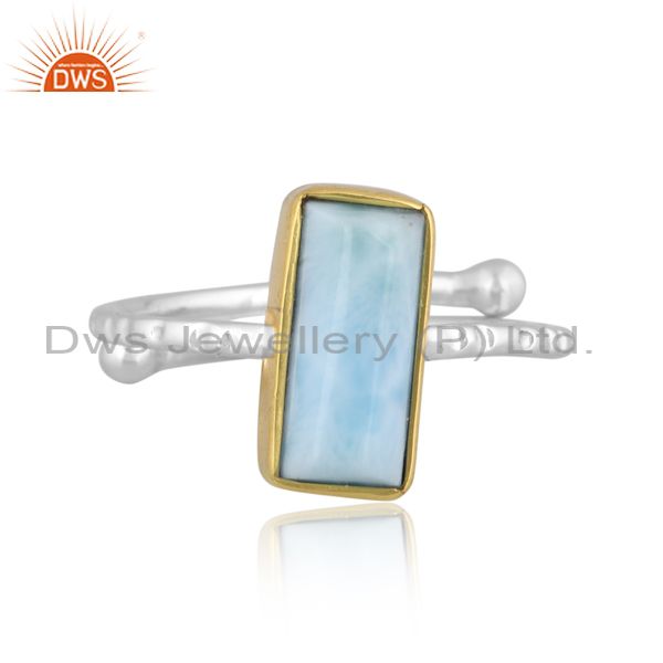 Larimar Set Gold On Fine Sterling Silver Rectangular Ring