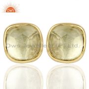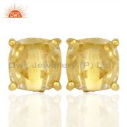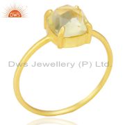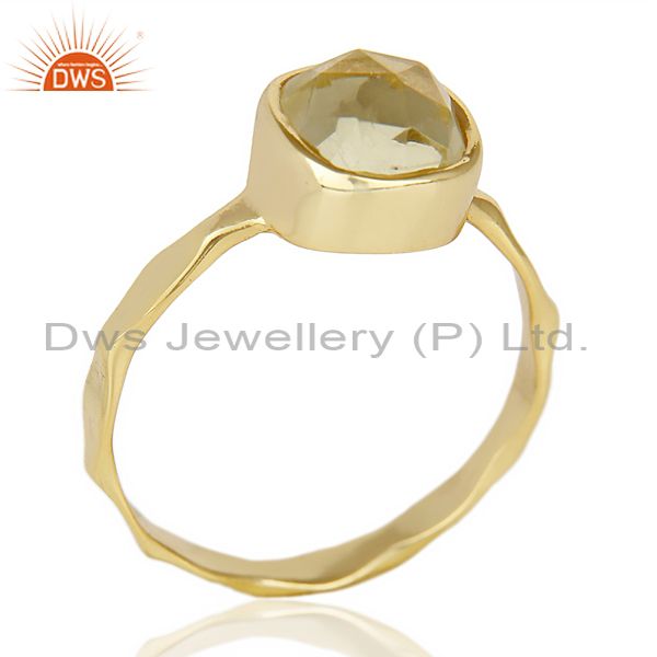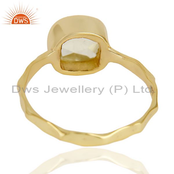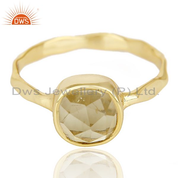 Lemon Topaz Cushion Shape Studded Gold Plated Hammered Ring In Solid Silver