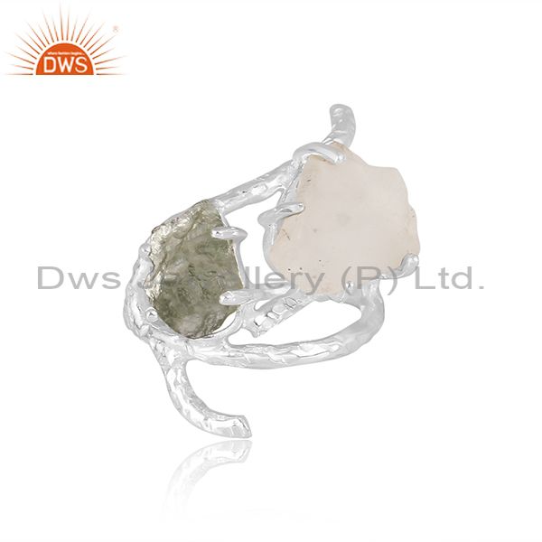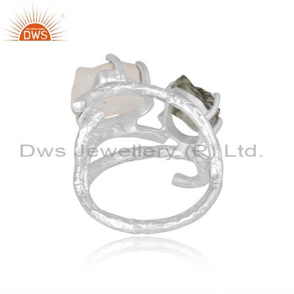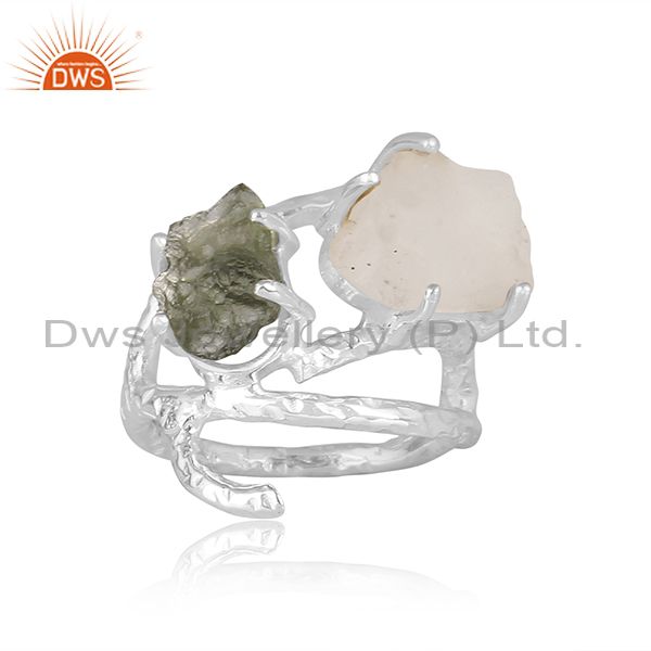 Libyan Desert Glass And Moldavite Set 925 Fine Silver Ring