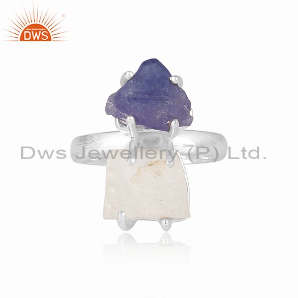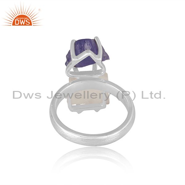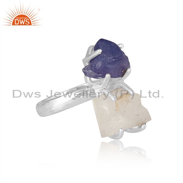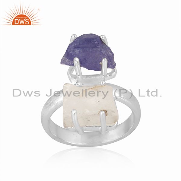 Libyan Desert Glass And Tanzanite Set Fine 925 Silver Ring