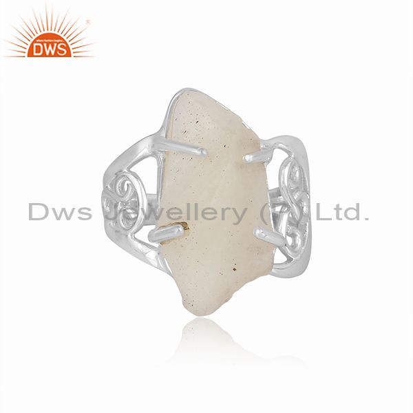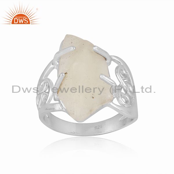 Libyan Desert Glass Set Fine Silver Abstract Designer Ring