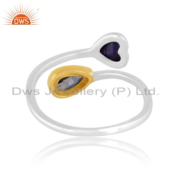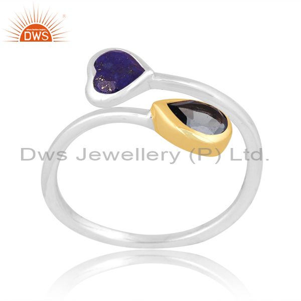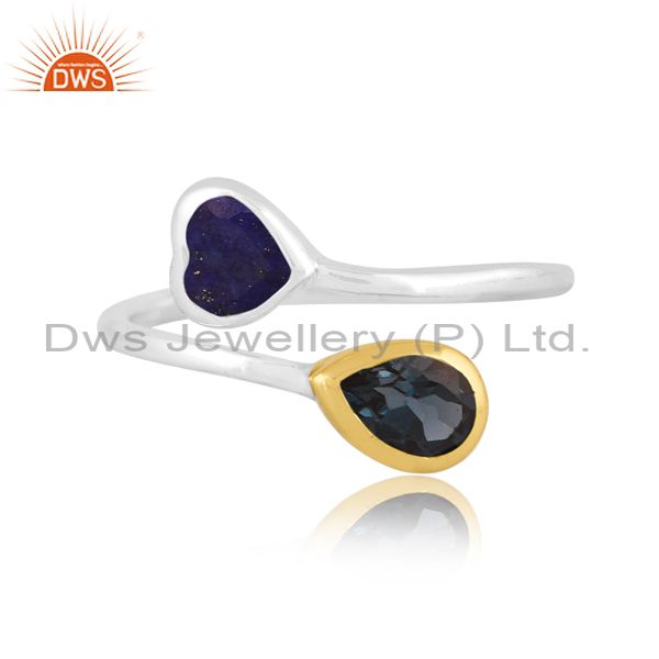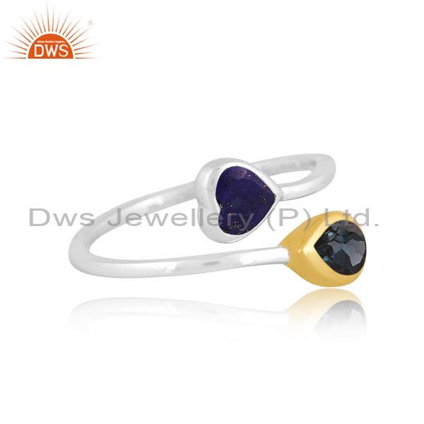 London Blue & Lapis Studded Sterling Silver Ring Gold White