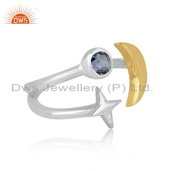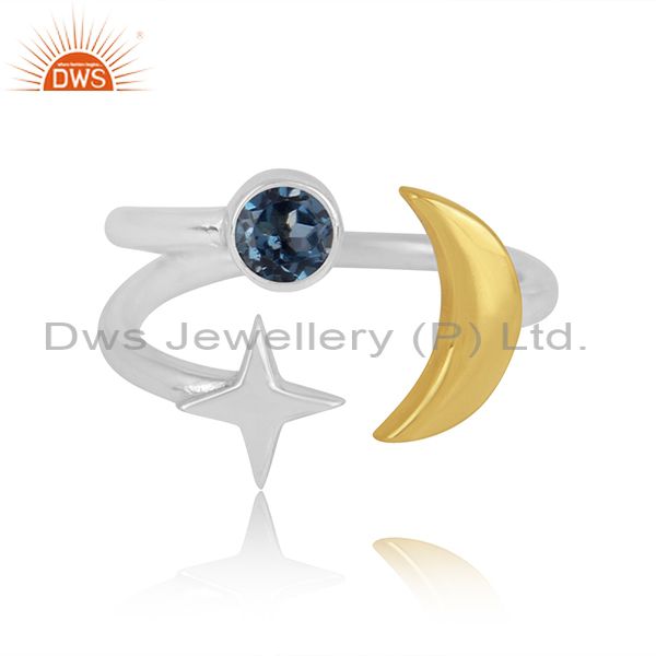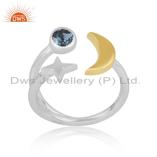 London Blue Topaz Set Gold On Fine 925 Silver Star Moon Ring