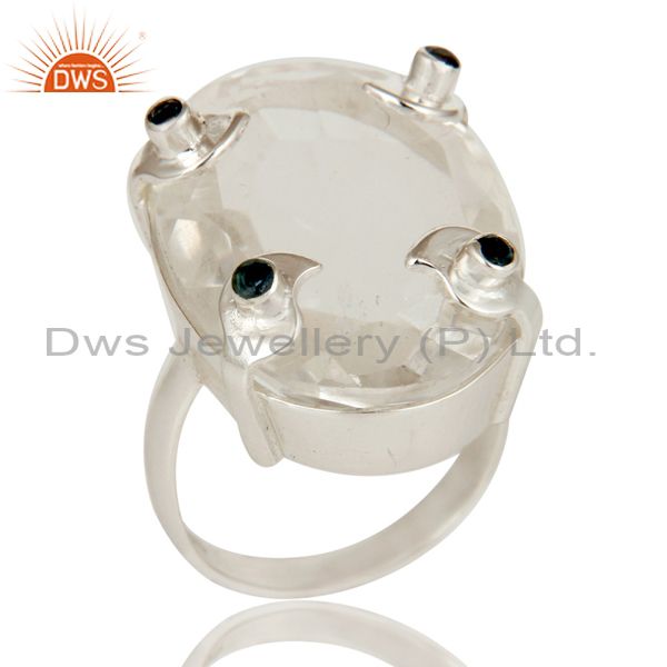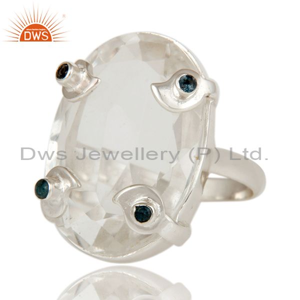 London Bue Topaz and Crystal Beautiful Sterling Silver Bezel and Prong Ring