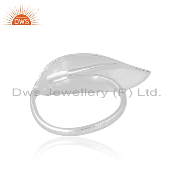 Long Leaf Style Plain Sterling Silver Finger Ring