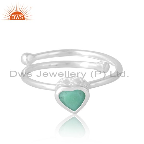 Lovable Chrysoprase Heart Cut Silver Ring In Currrent Trend