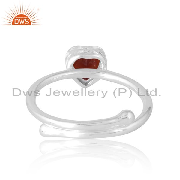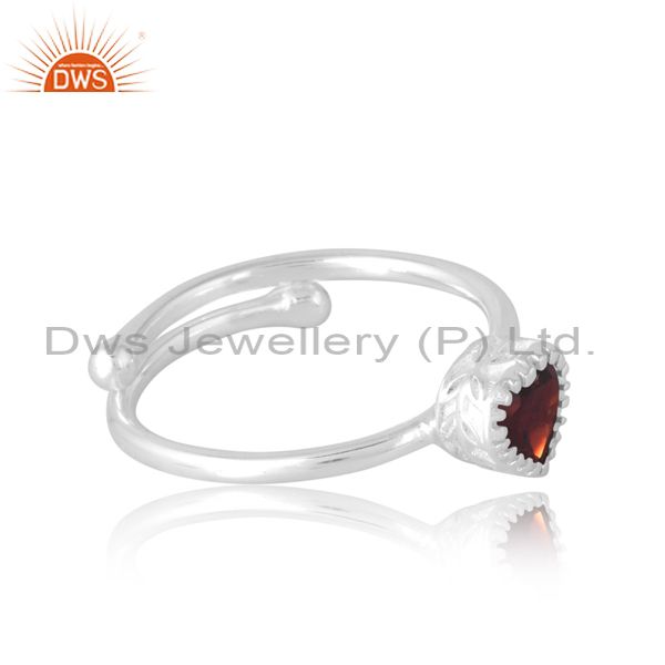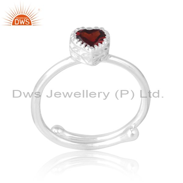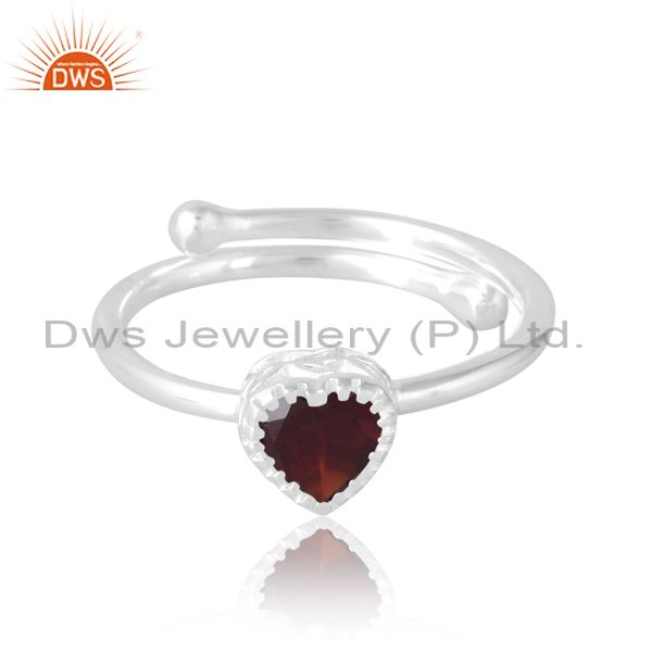 Love Heart Silver Cut Band Women In Garnet Stone Design