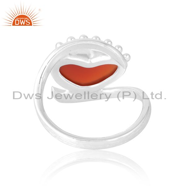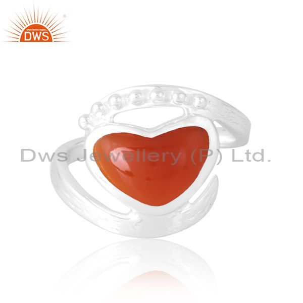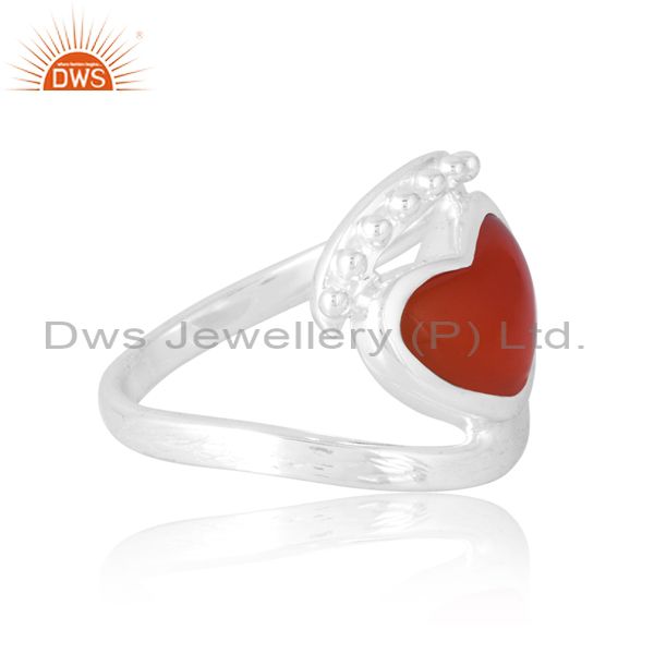 Lovely Red Onyx Crown Heart Silver Band For Casual Look