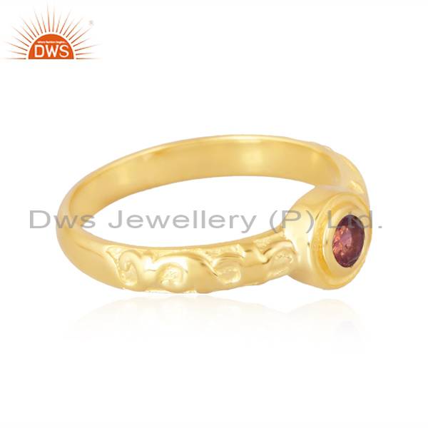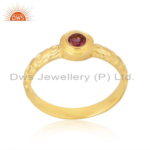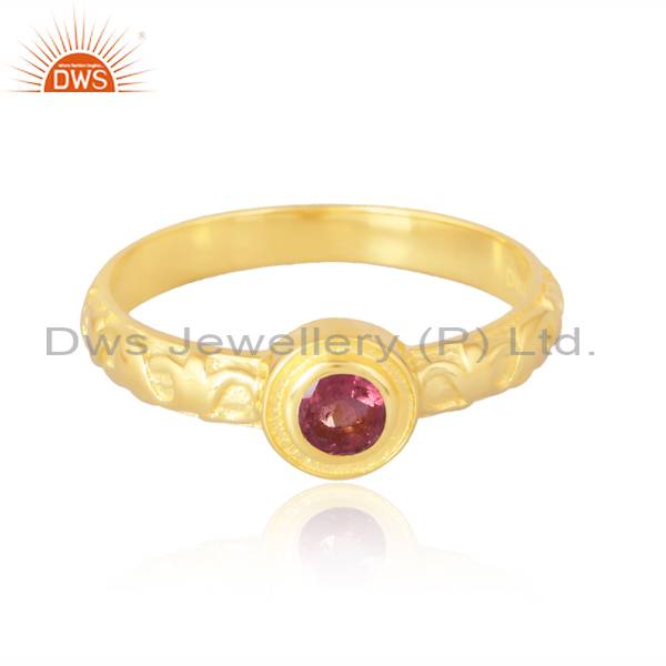 Lustrous 18K Gold Plated Silver White Pink Tourmaline Ring