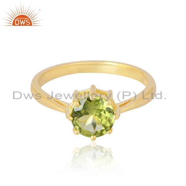 Lustrous 18K Gold-Plated Sterling Silver Peridot Round Ring