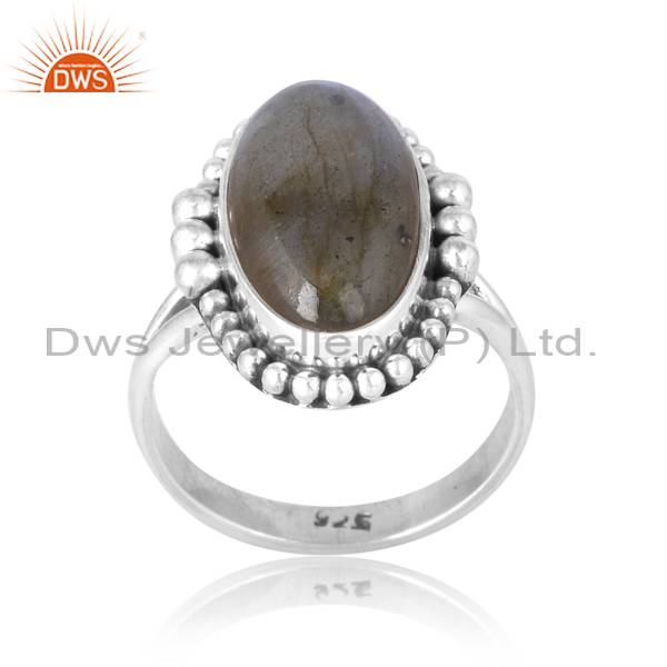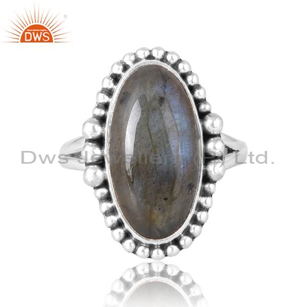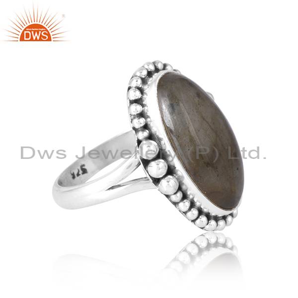 Lustrous Labradorite Sterling Oxidized Cushion Oval Ring