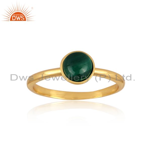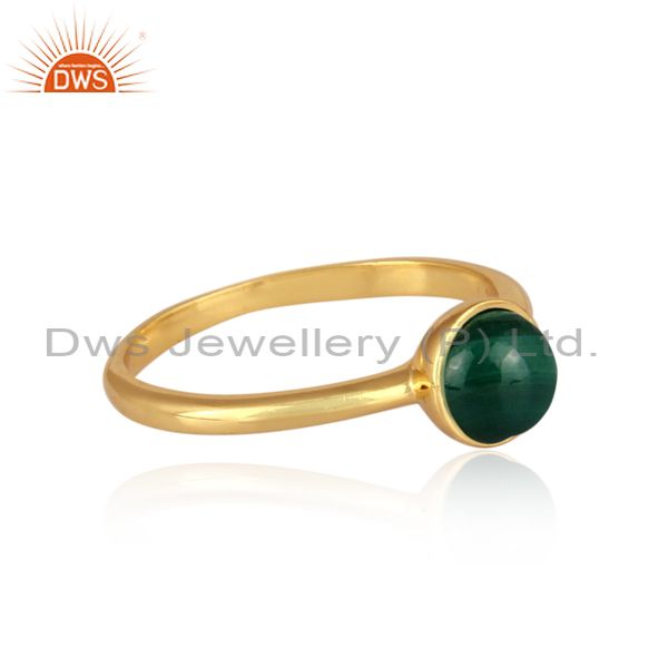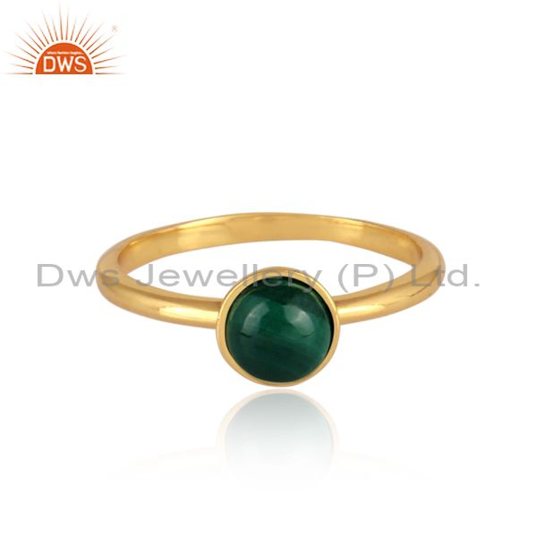 Malachite Set Gold On 925 Silver Handhammered Classic Ring