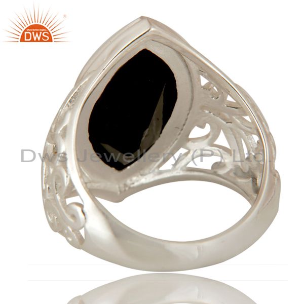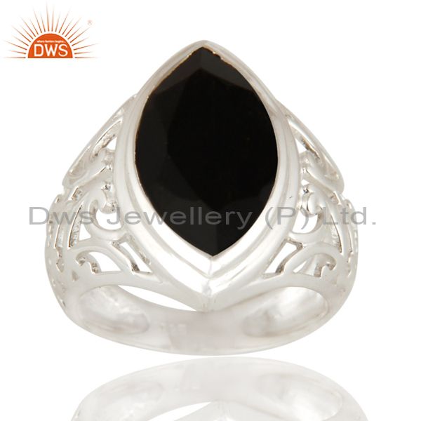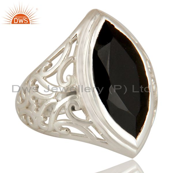 Marquise Cut Black Onyx Gemstone Ring In Solid Sterling Silver