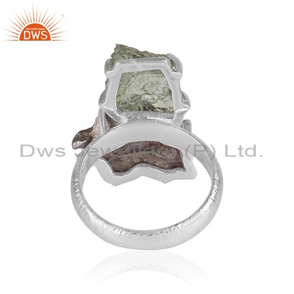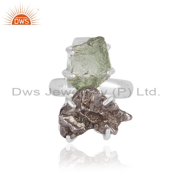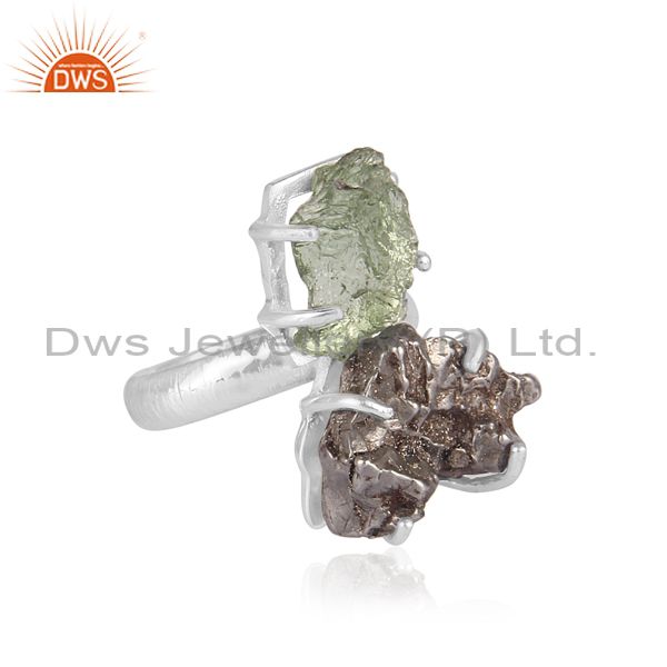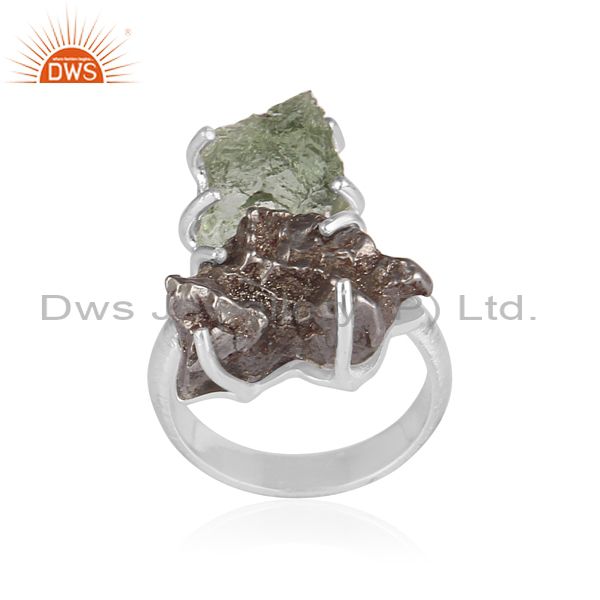 Meteorite And Moldavite Set Fine 925 Silver Statement Ring