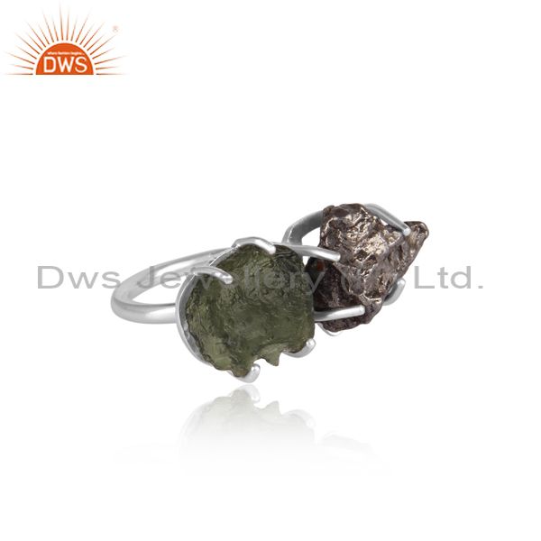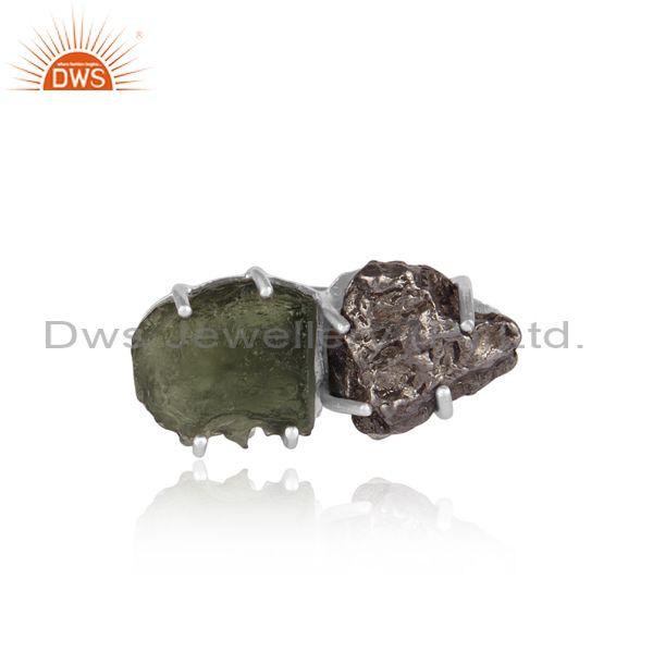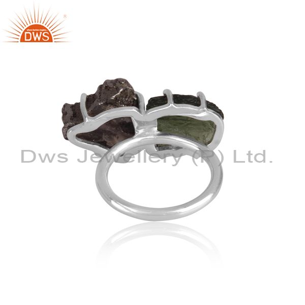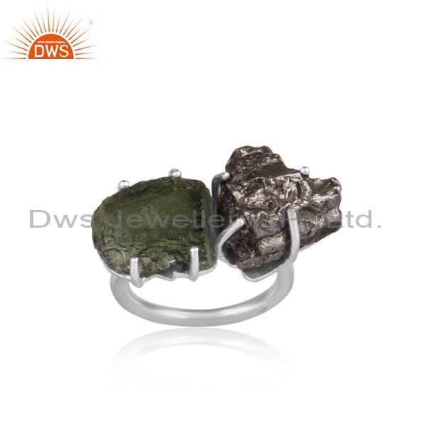 Meteorite And Moldavite Set Fine 925 Sterling Silver Ring