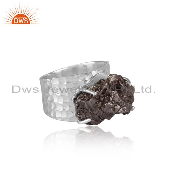 Meteorite Set Fine Sterling Silver Handmade Band Style Ring